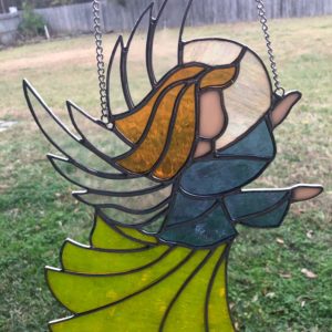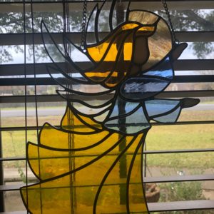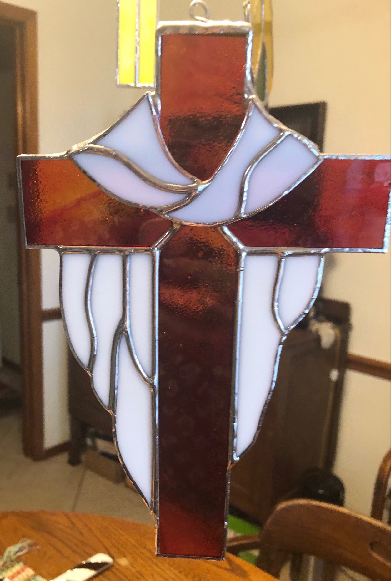 This beautiful cross is very symbolic. Size is 6″ X 9″. The glass for the cross is gorgeous with the sun shining through.